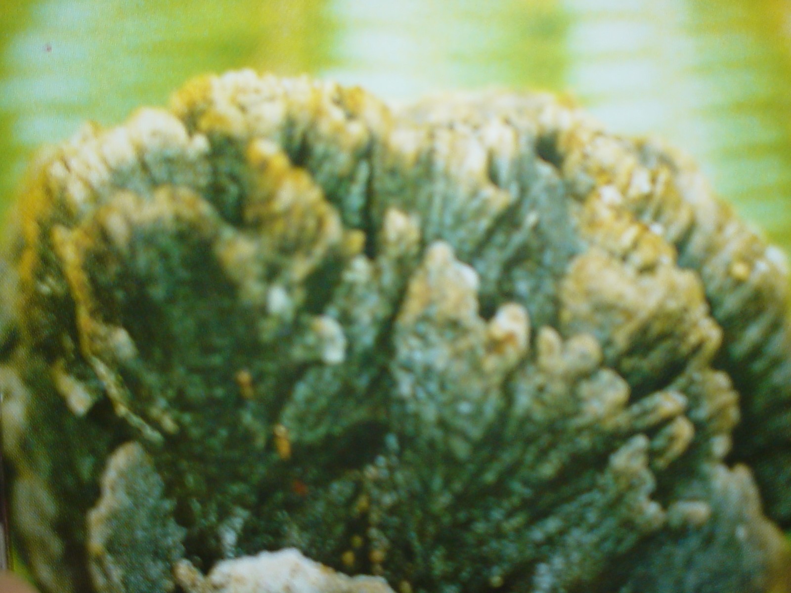 Hình thái: Thể quả to vừa, không có cuống, chất bần. Đường kính tán 5-14 cm x 7-25 cm, dày 0,5-2,5 cm, gốc dày 4-5 cm; hình bán nguyệt, phẳng; bề mặt có lông tơ màu xám nhạt, gốc màu vỏ quế, về sau rụng lông; có vân vòng đồng tâm rộng. Gốc thường có tảo mọc màu xanh lục, mép nấm hoàn chỉnh, mỏng, tù hoặc dạng sóng. Mô nấm màu trắng, chất gỗ, dày 3-25 mm. Ống nấm một tầng, màu gần trắng, dài 1 mm. Lỗ nấm màu trắng, dạng ngoằn ngoèo hướng bức xạ. Bào tử không màu, nhẵn, hình bầu dục, kích thước 4-6 x2-3μm